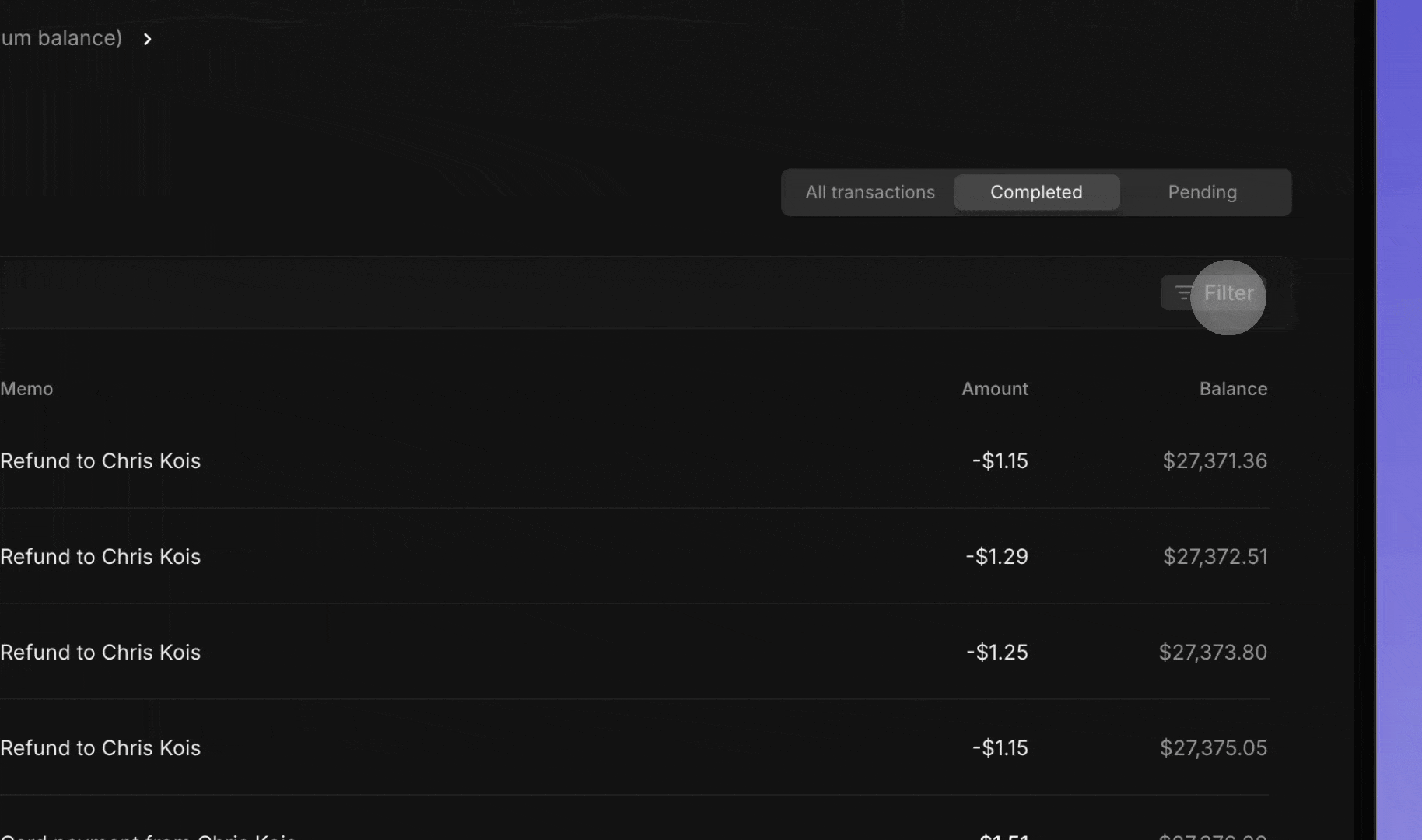 We also needed to show pending vs completed transactions so customers knew how their final wallet balance was being affected.
