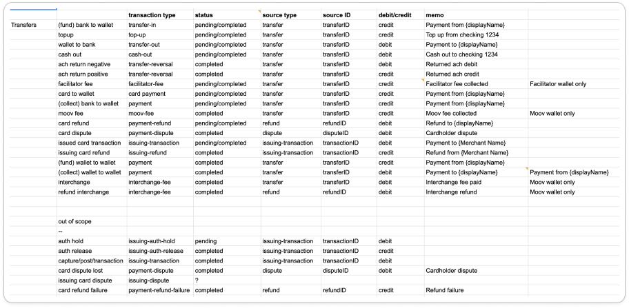 Transactions affect a customer’s wallet balance. These can be fees they collect on money their merchants move or on card issuing transactions. They can also be refunds, payments, wallet top-ups, etc. In fact, this project introduced 16 new transaction types.